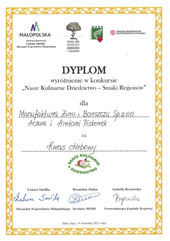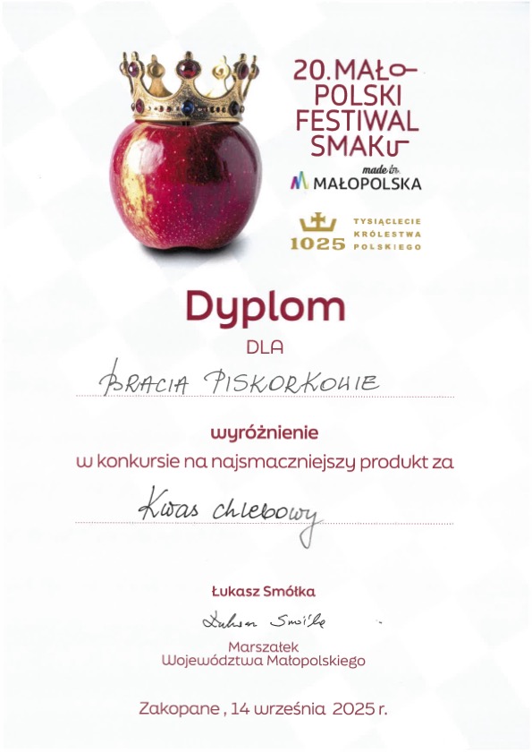 Produkty pod marką „Bracia Piskorkowie Adam i Antoni” powstają z pasją i zaangażowaniem w małej, rodzinnej firmie w zachodniej Małopolsce. Są wytwarzane w oparciu o naturalne składniki, w czasochłonnym procesie fermentacji. Tym, co nas wyróżnia jest nasz oryginalny zakwas, który wyprowadzany jest nieprzerwanie w naszej rodzinnej piekarni od ponad 80 lat.